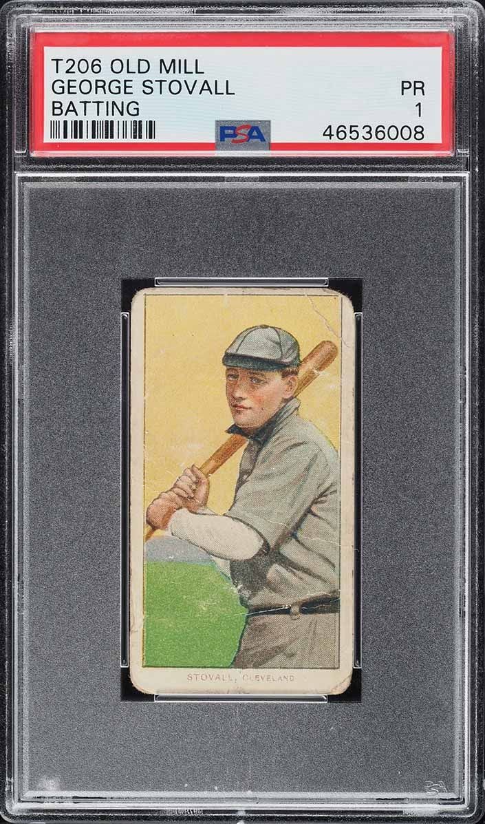 Stovall was a solid infielder during the Deadball Era, playing over 1400 games for three different big league teams. This off-grade (PSA 1) example comes with the rarer Old Mill back. Of the 378 total Stovall batting version cards in the PSA database only 16 are found with the Old Mill brand!