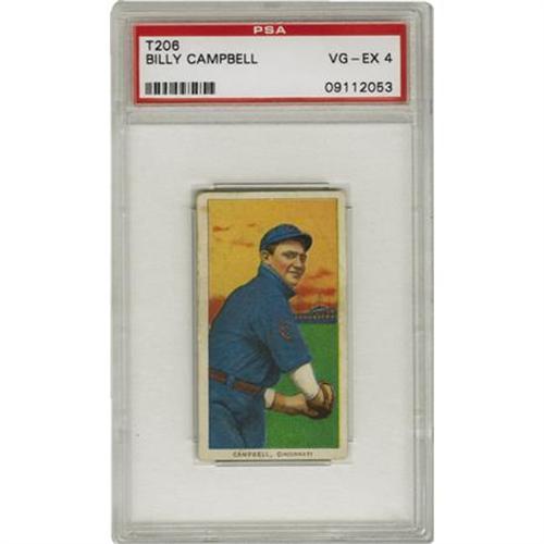 <B>1909-11 T206 Billy Campbell PSA VG-EX 4.</B></I> Definitely a testament to the exceptional color handling that the T206 tobacco issue, the Billy Campbell card has a blazing array color array making up the image area. Solid VG-EX example.<BR><BR><b>Shipping:</b> Requires 3rd Party Shipping (<a target="_blank" href="http://www.heritageauctions.com/common/shipping.php">view shipping information</a>)
