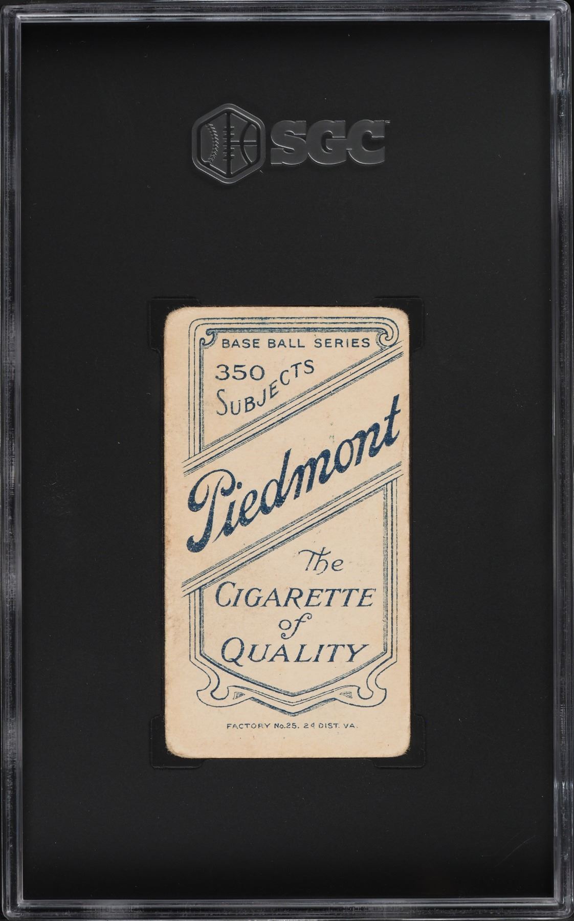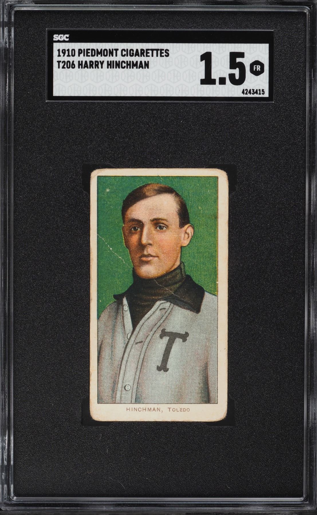 Hinchman player over 2000 professional baseball games from 1902 to 1921, in almost every classification from D ball up to a proverbial "cup of coffee" in majors in 1907 when he'd play in 16 games for the Cleveland Indians. This one of the minor league cards in the monster T206 set, showing Hinchman as a member of the Toledo Mud Hens. Graded 1.5 FR by SGC with a Piedmont back.
