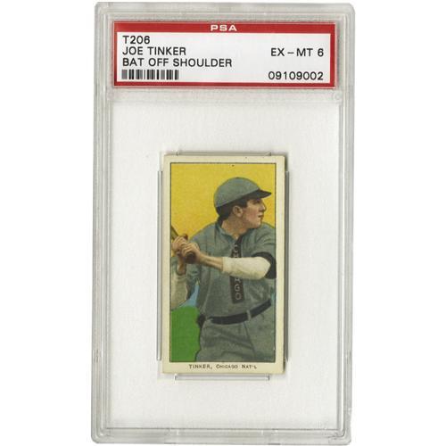 <B>1909-11 T206 Joe Tinker Bat Off Shoulder PSA EX-MT 6.</B></I> An intelligent, smooth-fielding, mediocre-hitting shortstop, Tinker and second baseman Johnny Evers, first baseman Frank Chance, and third baseman Harry Steinfeldt formed one of the better defensive infields of the day. Good evenly spaced bordering. Sweet Caporal back.
