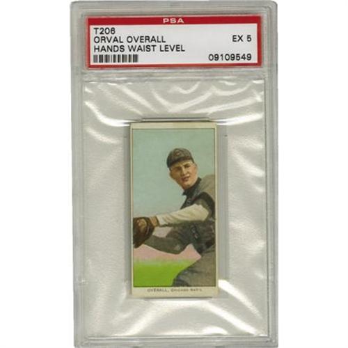 <B>1909-11 T206 Orval Overall Hands at Waist Level American Beauty (460) Back PSA EX 5.</B></I> Exceptional centering for this rare back T206 card features the White Sox ace hurler Orval Overall. Tough American Beauty 460 Subjects back goes for quite a premium, especially considering the EX grade.<BR><BR><b>Shipping:</b> Requires 3rd Party Shipping (<a target="_blank" href="http://www.heritageauctions.com/common/shipping.php">view shipping information</a>)