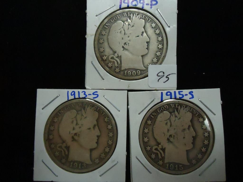 1909,13-S & 15-S BARBER HALF DOLLARS
