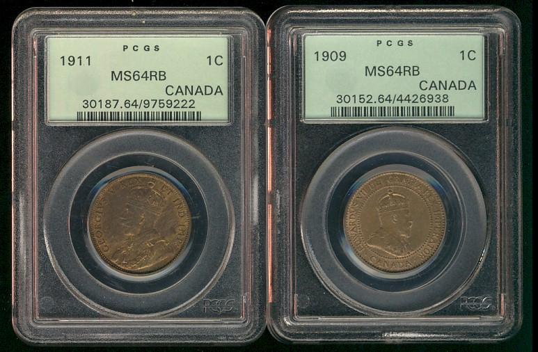 1909 & 1911 1¢ PCGS MS64RB. Lot of 2 coins.