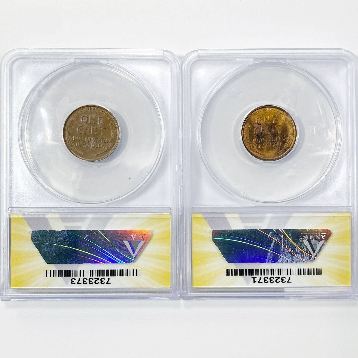 1909, 1919 Set (2) Wheat Cent ANACS-MS62 RB, AU55