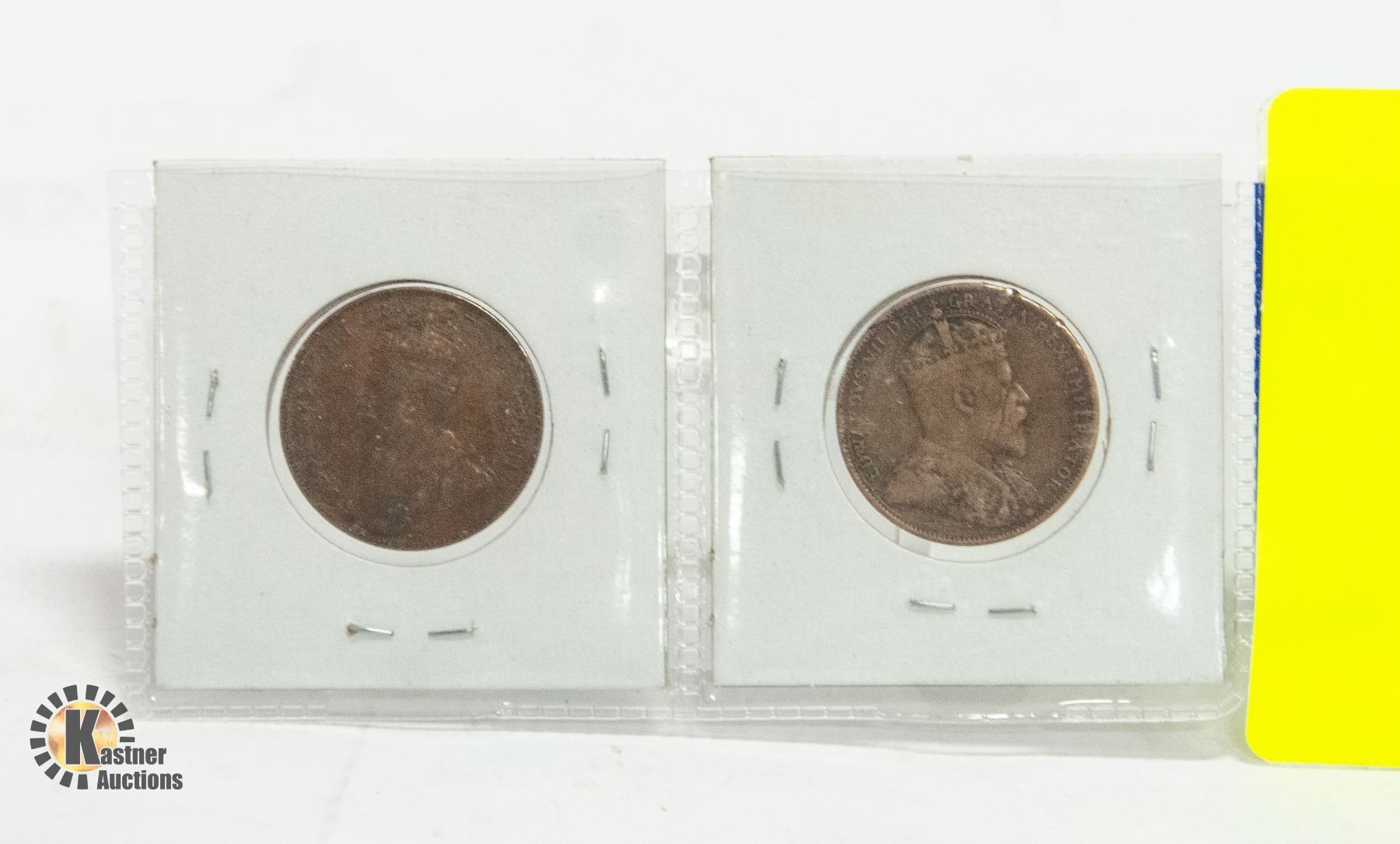 1909, 1936 NEWFOUNDLAND LARGE 1 CENT COINS