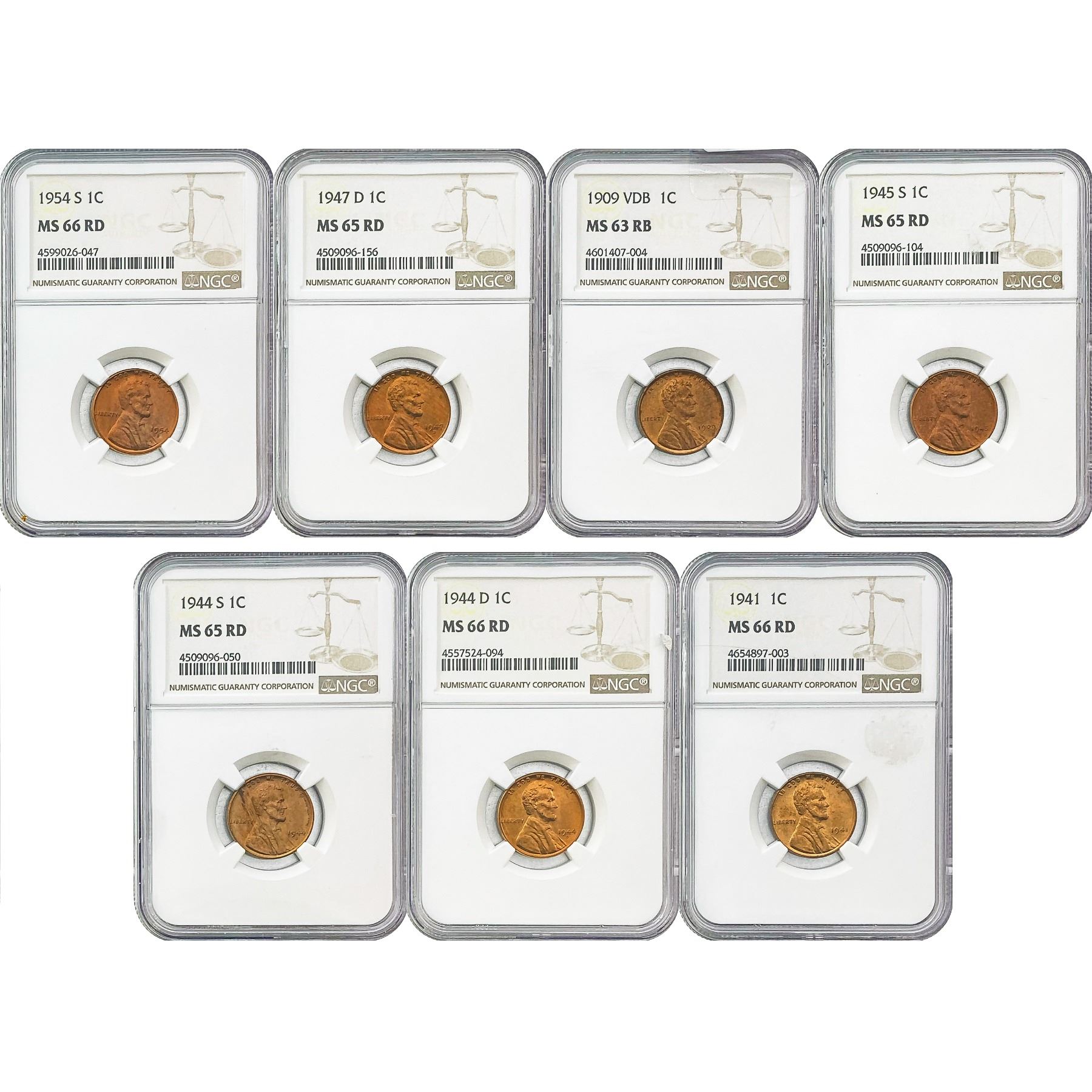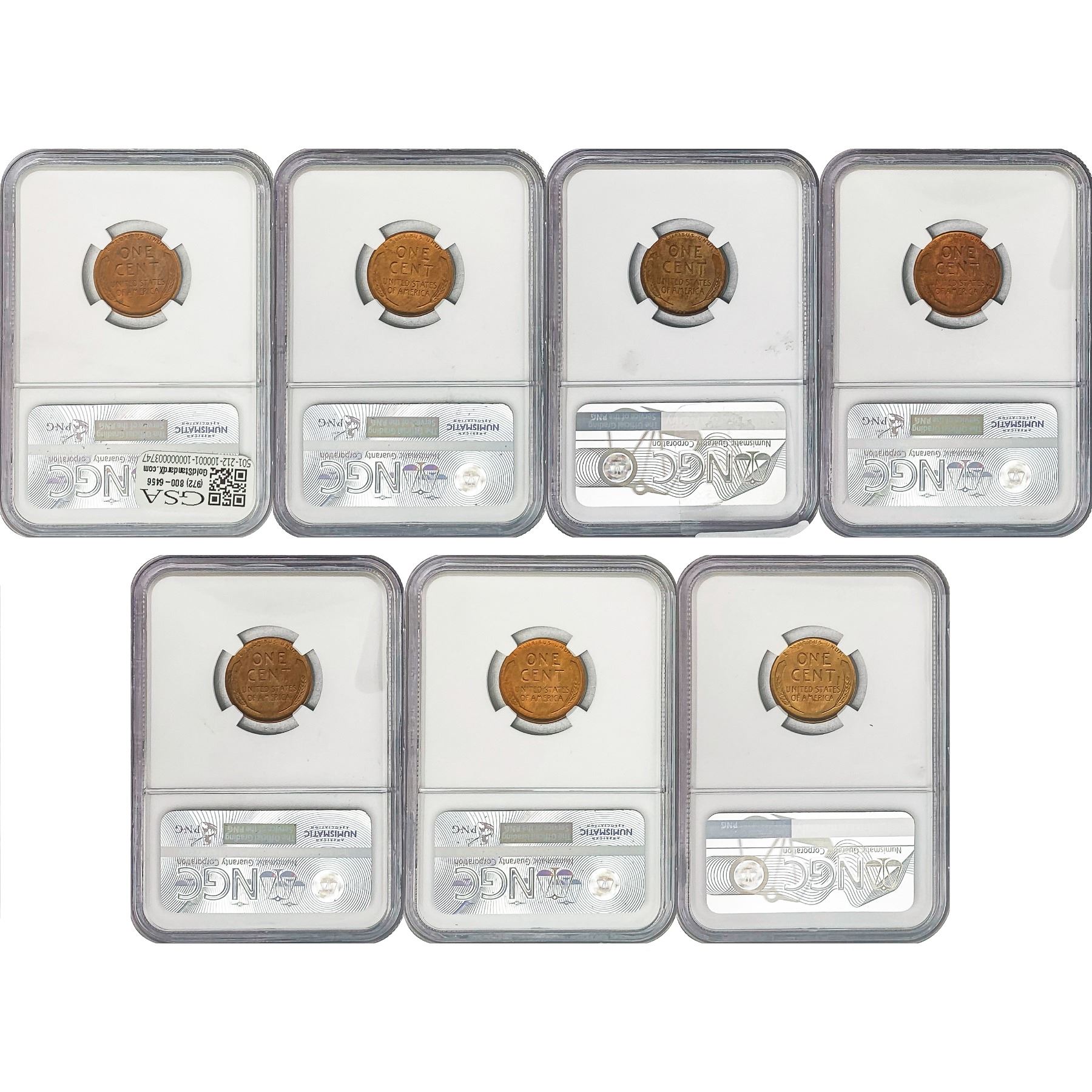 1909-1954 Gem BU Wheat Cent Set [7 Coins] NGC MS63-66