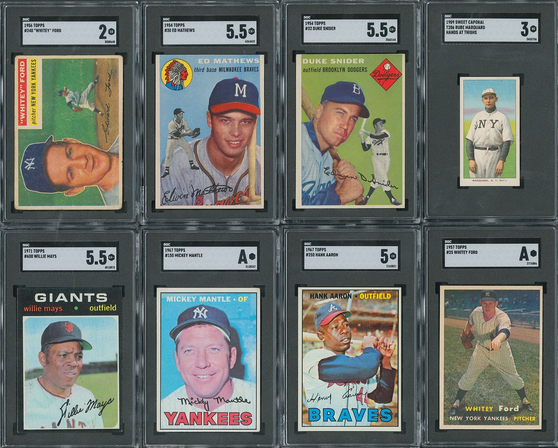 1967 Topps - 2 cards with #150 Mantle (SGC AUTH) and 250 Aaron (SGC EX 5).