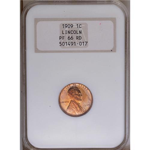 <B>1909<1C> PR66 Red NGC.</B></I> This first-year in the Lincoln cent series was produced both with and without the designer's initials on the lower reverse. This is the more frequently seen variant, and it is an enchanting coin. The surfaces retain full mint luster with a mixture of original orange-red and slightly deeper red coloration on each side. The fine-grain finish has an overlay of bright, satiny mint luster and there are no mentionable or noticeable contact marks on the obverse or reverse. Census: 10 in 66, 0 finer (7/06).<BR><I>From The New York Eye Appeal Collection.</B></I>