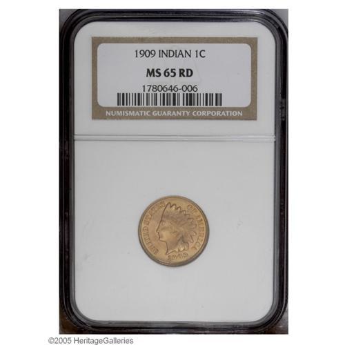 1909 1C MS65 Red NGC. Full reddish-gold patina with a 1909[1C] MS65 Red NGC.