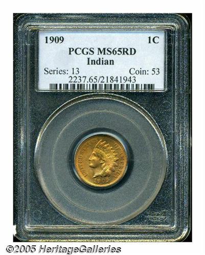 <B>1909<1C> MS65 Red PCGS.</B></I> A fiery final year Indian with above-average sharpness and streaky rose accents on the obverse.