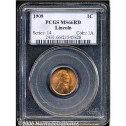 <B>1909 1C MS66 Red PCGS.</B></I> Gorgeous orange and straw-gold luster flows over crisply struck and reasonably preserved first year Cent. The V.D.B. initials found on early editions of this inaugural date were deemed too conspicuous and removed from the dies, the initials emerged again on Lincoln's shoulder in 1918.