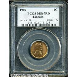 <B>1909 1C MS67 Red PCGS.</B></I> Although quite common in all grades up through Gem, this issue is unobtainable any finer as neither major grading service has graded a single finer example. The fiery red surfaces offer up no mentionable abrasions on either side.