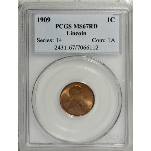<B>1909 1C MS67 Red PCGS.</B></I> Despite a mintage that is more than 2 1/2 times greater than its VDB counterpart, this first year Lincoln is far more difficult in Gem and better grades. The example offered here is Superb in every respect, being boldly struck with an impeccable, frosty sheen over both sides. Population: 52 in 67, 0 finer (12/06).<BR><BR><b>Shipping:</b> Coin/Currency (<a target="_blank" href="http://www.heritageauctions.com/common/shipping.php">view shipping information</a>)