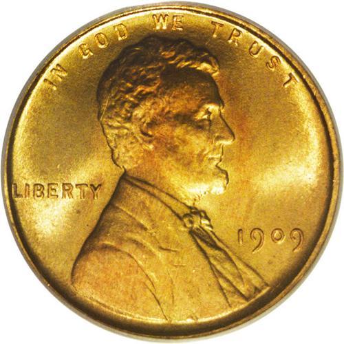 <B>1909<1C> MS67 Red PCGS.</B></I> In certified Gem Red condition the 1909 No VDB cent is actually much more elusive than the 1909 VDB cent, which was saved and hoarded in enormous numbers at the time of issue. The search for a Superb Gem 1909 can be surprisingly frustrating. Perhaps this piece will end some lucky collector's search, boasting as it does only slightly mellowed orange-red surfaces with a bold strike and a near-total absence of visible spots. A nice piece, and among the finest at either service (9/06).