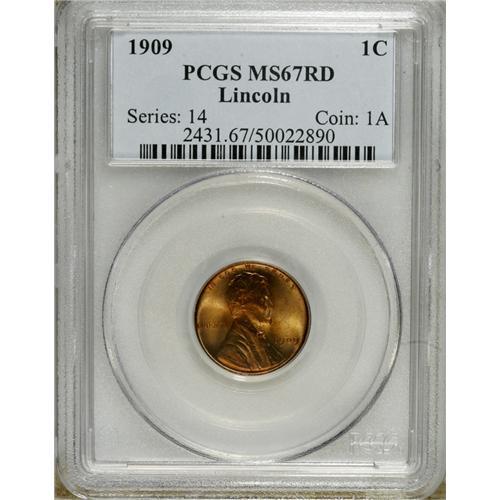 <B>1909 1C MS67 Red PCGS.</B></I> The second design type for Lincoln cents was this issue, with Victor D. Brenner's initials removed from the reverse. This example is tied for the finest certified by PCGS and exhibits frosty deep orange luster. The surfaces are virtually perfect. Population: 53 in 67, 0 finer (1/07).<BR><BR><b>Shipping:</b> Coins & Currency (<a target="_blank" href="http://www.heritageauctions.com/common/shipping.php">view shipping information</a>)