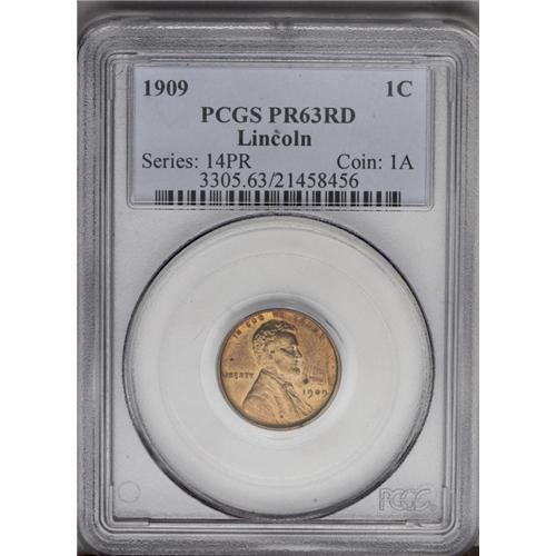 1909 1C PR63 Red PCGS. Lustrous, copper-gold surfaces 1909[1C] PR63 Red PCGS.