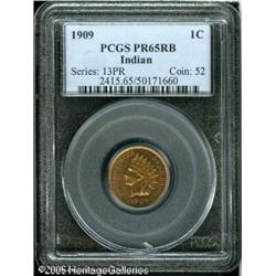 <B>1909 1C PR65 Red and Brown PCGS.</B></I> A razor-sharp final year proof Indian Cent with lovely peach-gold color. A pair of tiny gray flecks west of the date are of no concern. Population: 39 in 65, 12 finer (1/05). Lot:5355