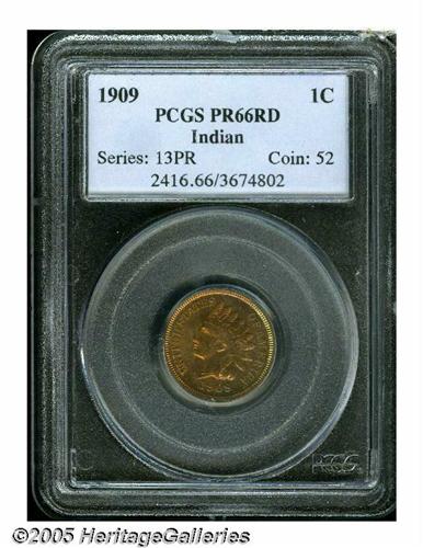 <B>1909<1C> PR66 Red PCGS.</B></I> Beautiful sunset-orange colors yield to a lighter crescent of yellow-gold coloration along the right side of the obverse. A few scattered carbon flecks are of minimal distraction. Population: 14 in 66, 2 finer (6/05).