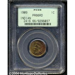 <B>1909<1C> PR66 Red PCGS.</B></I> Fully struck with fiery red and vivid light-green colors. There are just a handful of flyspecks on the nicely reflective surfaces, but no contact marks are evident. A really lovely premium quality Gem. Population: 14 in 66, 2 finer (7/04). <BR><BR><B>Important notice:</B> Heritage usually auctions material at the rate of 200-250 lots per hour. On some occasions eBay Live bid software or the Internet may not be able to keep up with the pace of the auction. We recommend placing a realistic absentee bid now as insurance to avoid disappointment. Occasionally the auctioneer may eliminate or reject an eBay Live bid, and the auctioneer may also reopen a lot after the close of the eBay live bidding (usually because we missed an audience bid), and may reject your bid even if it shows you as the winning bidder. By bidding via eBay Live, you agree that Heritage may award the lot to another bidder at its sole discretion under the circumstances described above or any other reasonable circumstances. Since eBay bids are not shown to us until we open the lot on the floor, we treat those bids just like floor bids. In most cases the floor responds before the eBay bid is presented to us, due to Internet lag time, so for consistency we have made it a policy that floor bids are always considered first over tie eBay live bids. Also please note that all Heritage lots purchased through eBay Live carry a 20% Buyer's Premium. Please make sure you read the Terms and Conditions before you bid. </span></font></tr></table></td></tr></table>