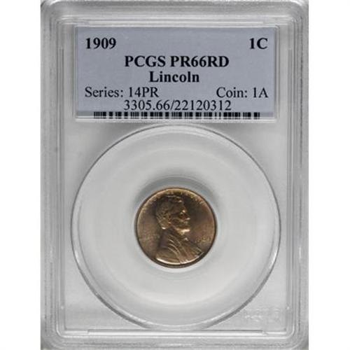 <B>1909 1C PR66 Red PCGS.</B></I> The first year of issue and the more frequently encountered (by far) in proof format of the two design types struck. Still, only 2,198 pieces were produced of the 1909, and few retain the full mint red surfaces seen on this coin. The obverse die for this piece was held over from the 1909 VDB matte proof coinage. It is distinguished by a patch of die lines in front of Lincoln's nose, running northwest to southeast, and a die line beneath TY that joins Lincoln's shoulder. Variegated orange-red and cherry-red coloration is distributed over each side of this nearly defect-free matte proof. Population: 38 in 66 Red, 6 finer (12/07).<BR><BR><B>Coin Engraver:</B> Victor D. Brenner<BR><BR><b>Shipping:</b> Coins & Currency (<a target="_blank" href="http://www.heritageauctions.com/common/shipping.php">view shipping information</a>)