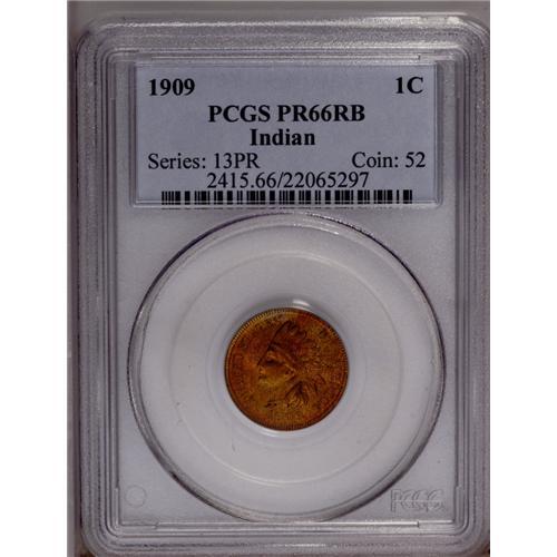 <B>1909<1C> PR66 Red and Brown PCGS.</B></I> Fire-red and gold graces the obverse, and the reverse shows an equally pleasing combination of olive, gold, and ruby-red hues. An intricately struck and satiny premium Gem, impressive aside from a few pinpoint carbon flecks.