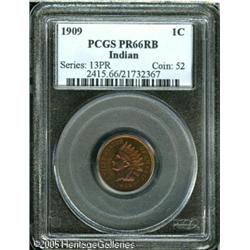 <B>1909 1C PR66 Red and Brown PCGS.</B></I> Lovingly preserved with a scattered overlay of violet-magenta patina. A difficult piece to locate with higher amounts of eye appeal. Lot:5356