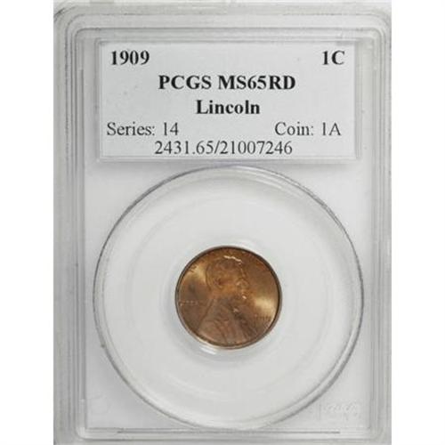 <B>1909 1C MS65 Red PCGS.</B></I> . PCGS Population (737/456). NGC Census: (325/165). Mintage: 72,702,616. Numismedia Wsl. Price for NGC/PCGS coin in MS65: $75. (#2431)<BR><BR><B>Coin Engraver:</B> Victor D. Brenner<BR><BR><b>Shipping:</b> Coins & Currency (<a target="_blank" href="http://www.heritageauctions.com/common/shipping.php">view shipping information</a>)