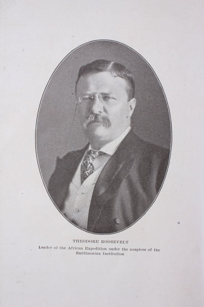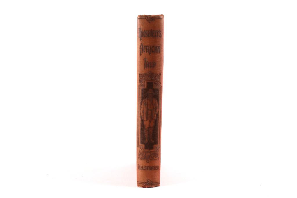 For your consideration is this 1909 first edition copy of Roosevelt's African Trip by Frederick William Unger. This is a story of Roosevelt's life, the voyage from New York to Mombasa, and the Route through the Heart of Africa including the Big game and other ferocious animals, strange peoples and countries found in the course of his travels. The condition of this book is good with some light wear to the cover and some browning to the pages but good for its age; the book is missing one of the front pages but cover page is present. The measurements of this book are 9 1/2" x 7 1/4".