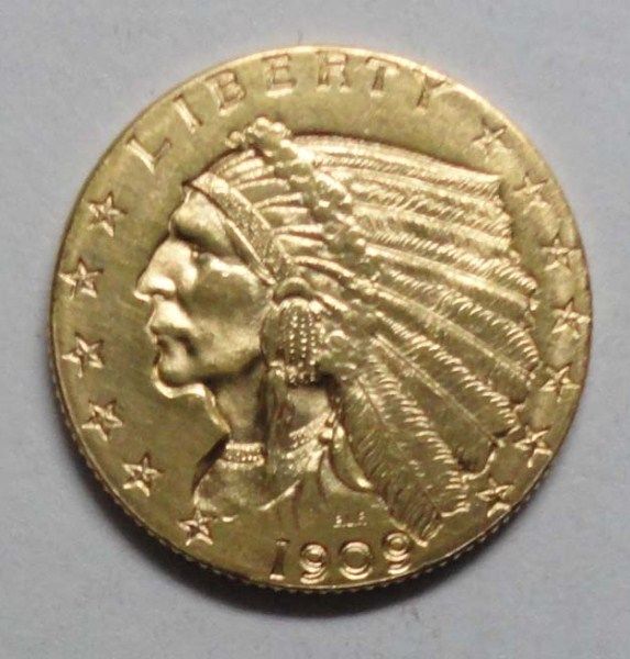 1909 $ 2 1/2 Gold, Ch Bu 63+, well struck & quite attractive, scarce early date