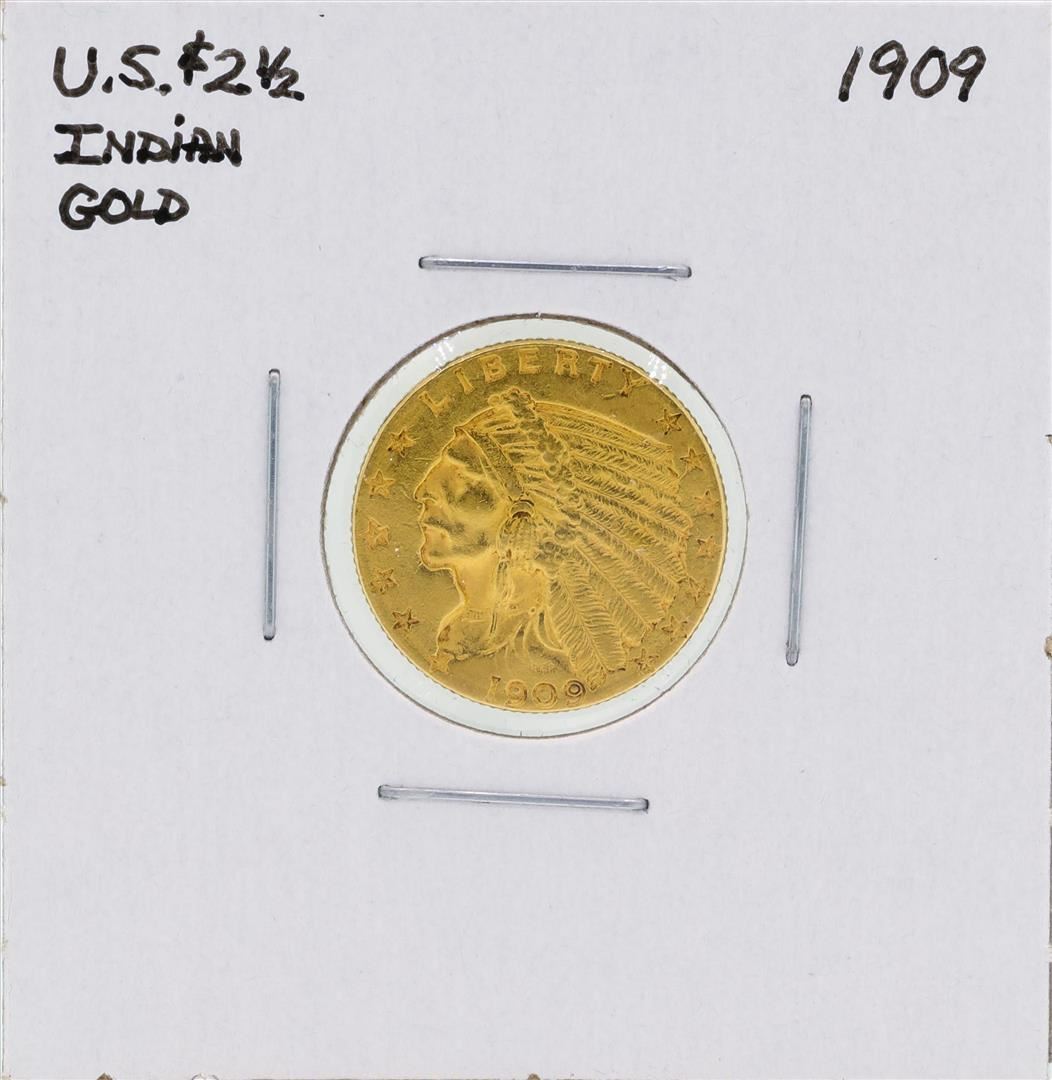 One 1909 $2 1/2 Indian Head Quarter Eagle Gold Coin.