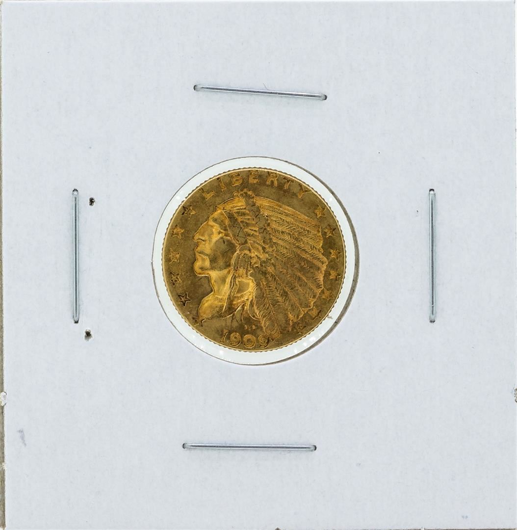 One 1909 $2 1/2 Indian Head Quarter Eagle Gold Coin.