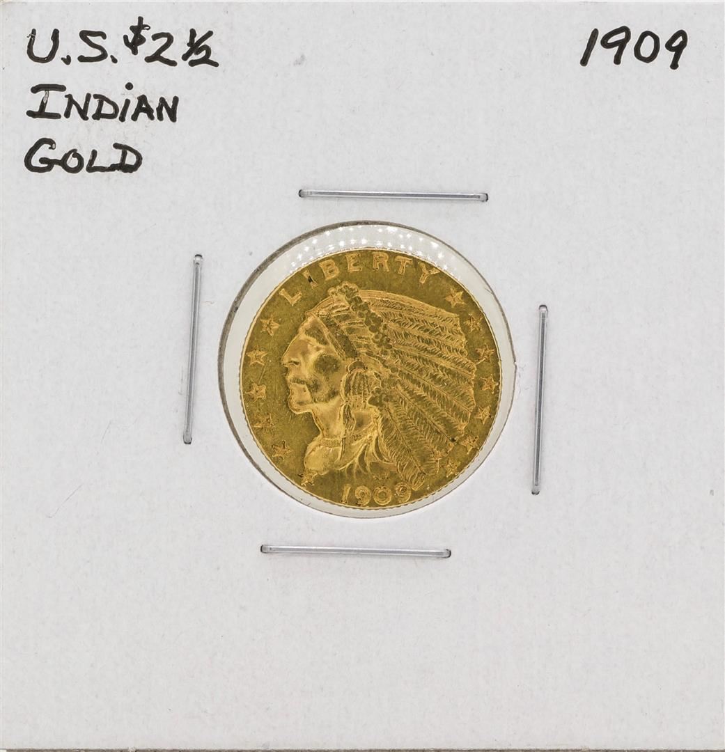 One 1909 $2 1/2 Indian Head Quarter Eagle Gold Coin.