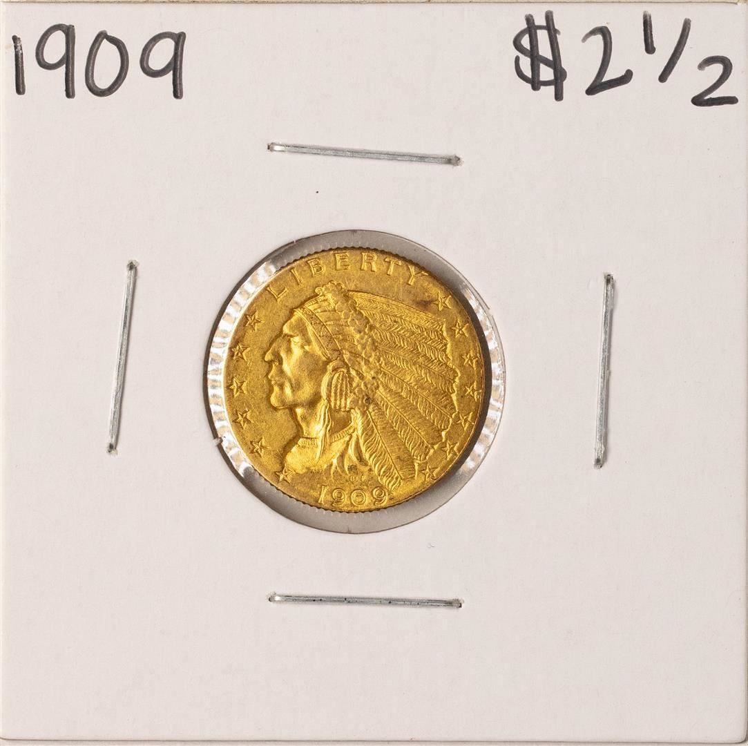 One 1909 $2 1/2 Indian Head Quarter Eagle Gold Coin.