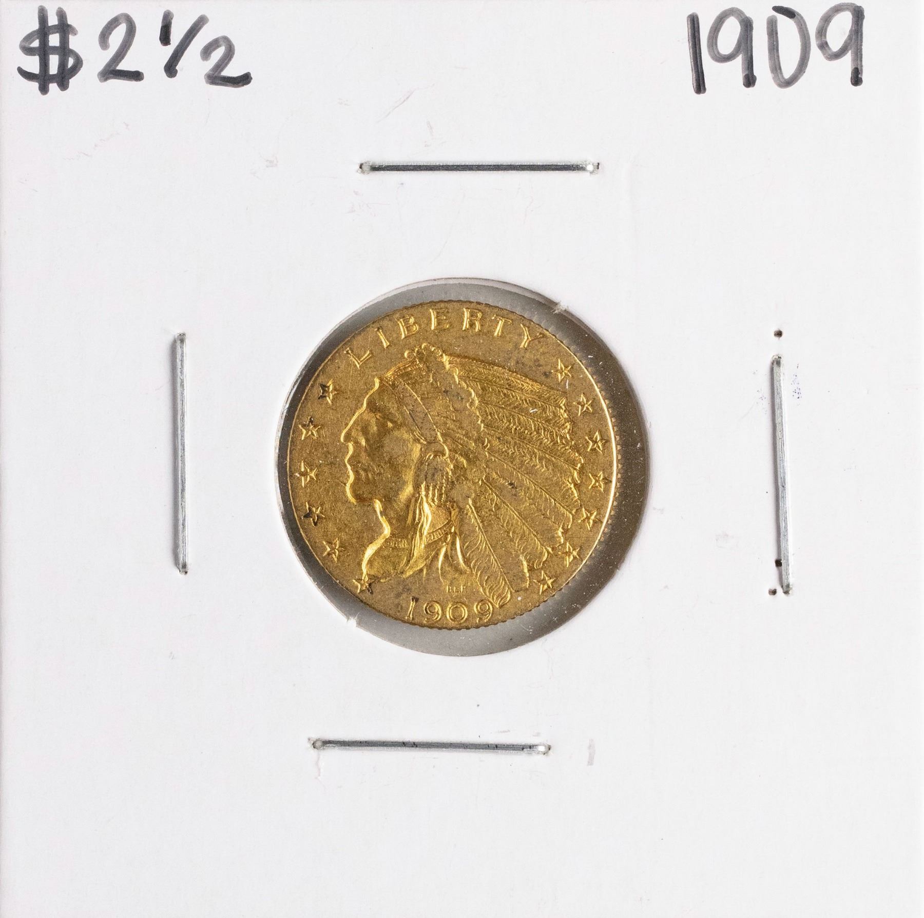 One 1909 $2 1/2 Indian Head Quarter Eagle Gold Coin.