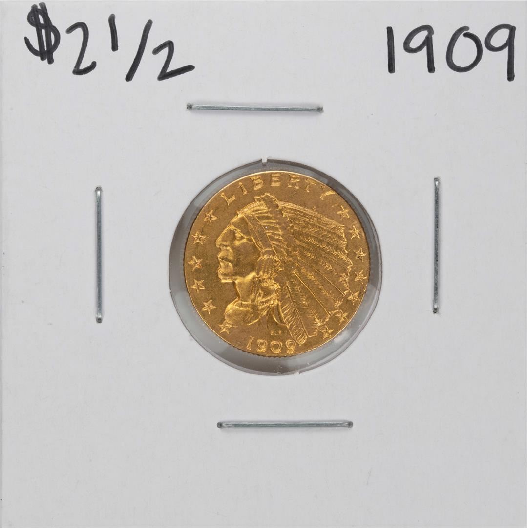 One 1909 $2 1/2 Indian Head Quarter Eagle Gold Coin.
