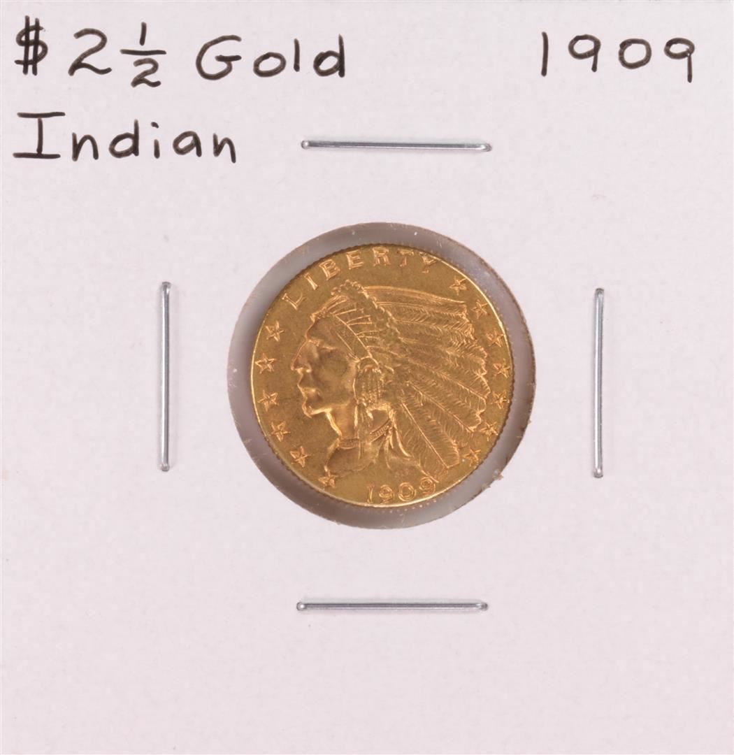 One 1909 $2 1/2 Indian Head Quarter Eagle Gold Coin.