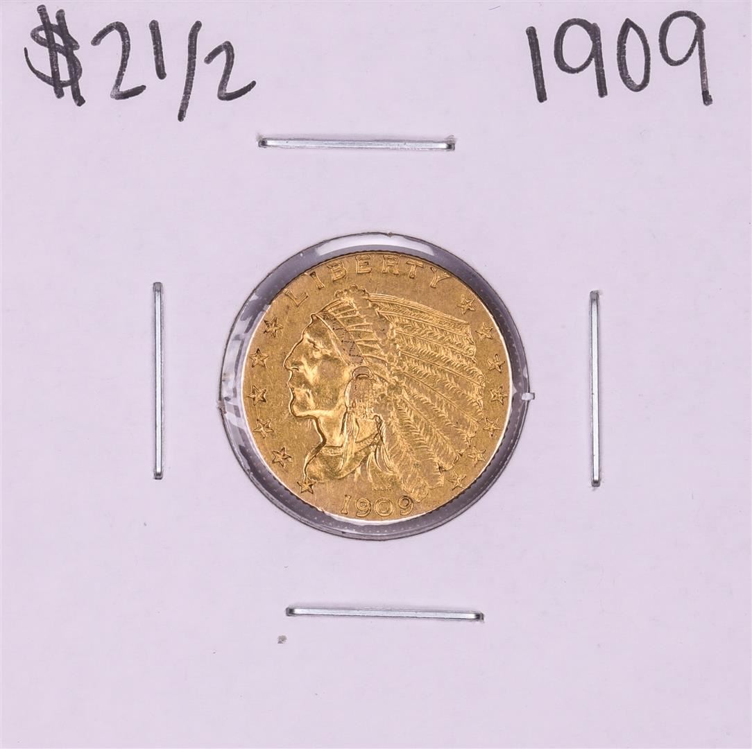 One 1909 $2 1/2 Indian Head Quarter Eagle Gold Coin.