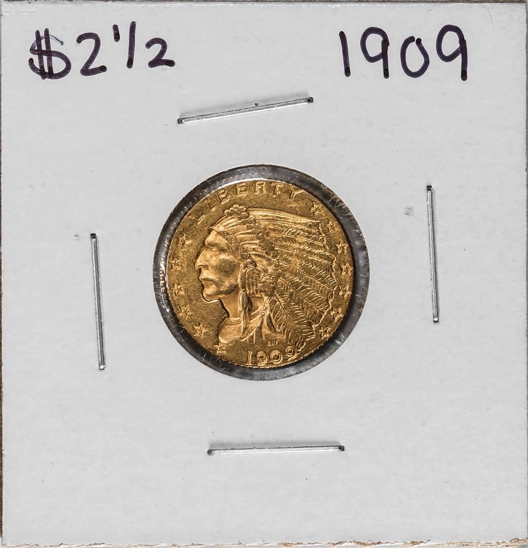 One 1909 $2 1/2 Indian Head Quarter Eagle Gold Coin.