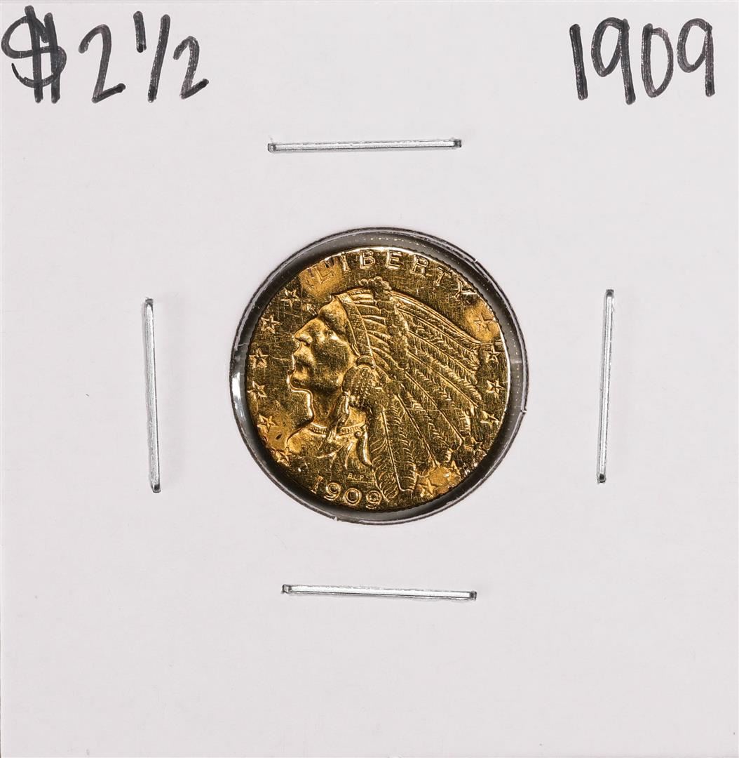 One 1909 $2 1/2 Indian Head Quarter Eagle Gold Coin.