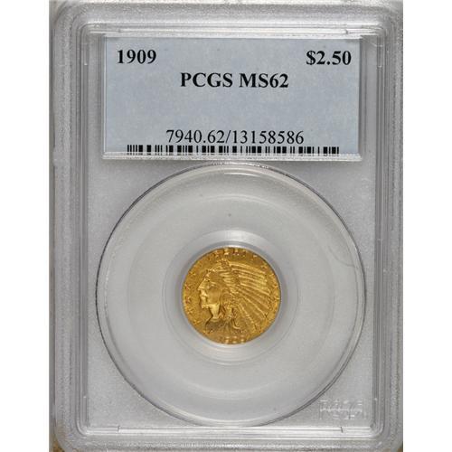 1909 $2 1/2 MS62 PCGS. PCGS Population (667/1153).