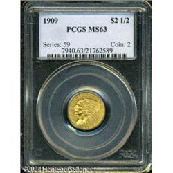1909 $2 1/2 MS63 PCGS. Boldly struck with smooth, 1909 $2 1/2 MS63 PCGS.