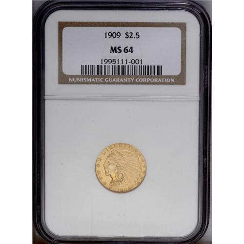 1909 $2 1/2 MS64 NGC. This near Gem is sharply struck,