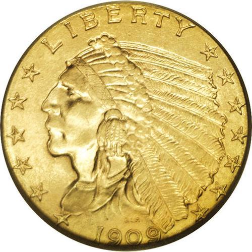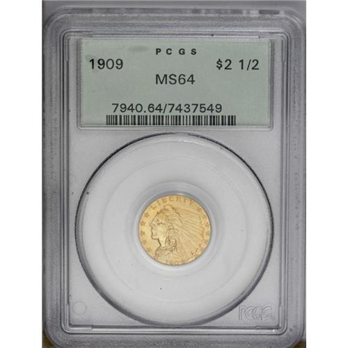 1909 $2 1/2 MS64 PCGS. The 1909 quarter eagle, with a 1909[$2 1/2] MS64 PCGS.