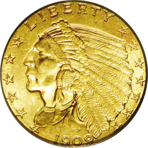 1909 $2 1/2 MS64 PCGS. This is a notable coin, not onl 1909[$2 1/2] MS64 PCGS.
