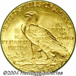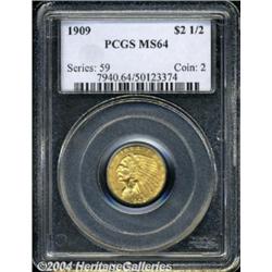 <B>1909<$2 1/2> MS64 PCGS.</B></I> An exceptionally smooth borderline-Gem with delicate golden-orange color. There is nothing on either side that seems to preclude an MS65 designation. Worth a close look. <BR><BR><B>Important notice:</B> Heritage usually auctions material at the rate of 200-250 lots per hour. On some occasions eBay Live bid software or the Internet may not be able to keep up with the pace of the auction. We recommend placing a realistic absentee bid now as insurance to avoid disappointment. Occasionally the auctioneer may eliminate or reject an eBay Live bid, and the auctioneer may also reopen a lot after the close of the eBay live bidding (usually because we missed an audience bid), and may reject your bid even if it shows you as the winning bidder. By bidding via eBay Live, you agree that Heritage may award the lot to another bidder at its sole discretion under the circumstances described above or any other reasonable circumstances. Since eBay bids are not shown to us until we open the lot on the floor, we treat those bids just like floor bids. In most cases the floor responds before the eBay bid is presented to us, due to Internet lag time, so for consistency we have made it a policy that floor bids are always considered first over tie eBay live bids. Also please note that all Heritage lots purchased through eBay Live carry a 20% Buyer's Premium. Please make sure you read the Terms and Conditions before you bid. </span></font></tr></table></td></tr></table>