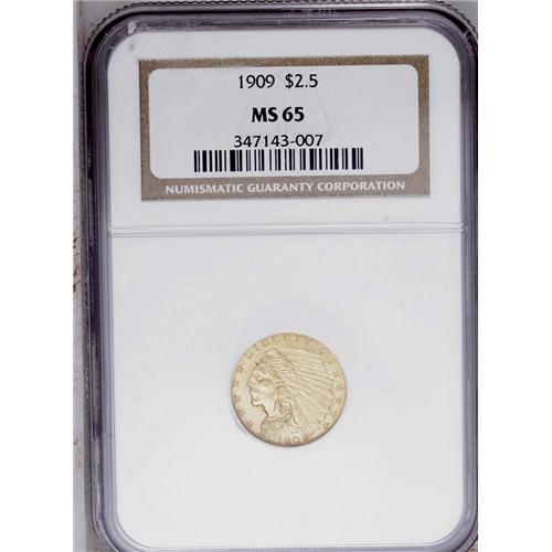 1909 $2 1/2 MS65 NGC. The 1909 quarter eagle, with a b 1909