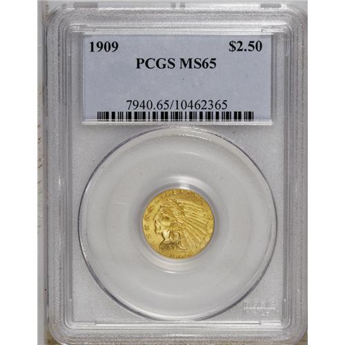 1909 $2 1/2 MS65 PCGS. A nice-looking Gem specimen, w