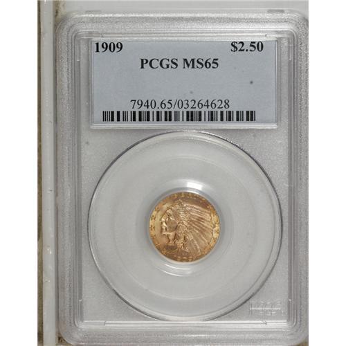 1909 $2 1/2 MS65 PCGS. At a distance, the color of thi