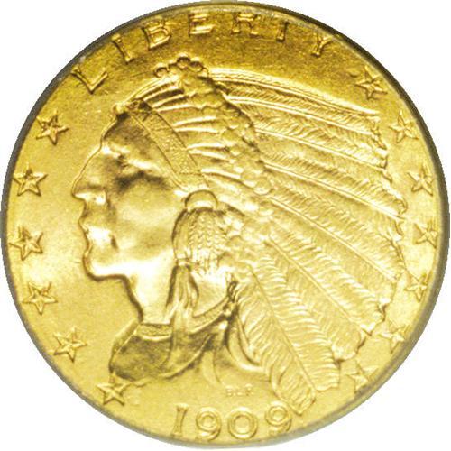 <B>1909 $2 1/2 MS65 PCGS.</B></I> This appealing Gem has a clean and lustrous appearance that would do justice to any issue in the Indian Head quarter eagle series. The beautifully smooth fields have a distinct matte-like texture and are virtually unmarked. Uniformly bold striking details and lovely honey-gold toning are additional attributes of this highly recommended offering. PCGS has graded only 16 examples of this issue finer (10/06).<BR><BR><b>Shipping:</b> Coin/Currency (<a target="_blank" href="http://www.heritageauctions.com/common/shipping.php">view shipping information</a>)