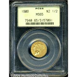 <B>1909<$2 1/2> MS65 PCGS.</B></I> An impeccable Gem whose satiny surfaces are bathed in delicate orange and lilac patina. Only a quick glance is necessary to determine that this is one incredibly nice Indian Quarter Eagle. <BR><BR><B>Important notice:</B> Heritage usually auctions material at the rate of 200-250 lots per hour. On some occasions eBay Live bid software or the Internet may not be able to keep up with the pace of the auction. We recommend placing a realistic absentee bid now as insurance to avoid disappointment. Occasionally the auctioneer may eliminate or reject an eBay Live bid, and the auctioneer may also reopen a lot after the close of the eBay live bidding (usually because we missed an audience bid), and may reject your bid even if it shows you as the winning bidder. By bidding via eBay Live, you agree that Heritage may award the lot to another bidder at its sole discretion under the circumstances described above or any other reasonable circumstances. Since eBay bids are not shown to us until we open the lot on the floor, we treat those bids just like floor bids. In most cases the floor responds before the eBay bid is presented to us, due to Internet lag time, so for consistency we have made it a policy that floor bids are always considered first over tie eBay live bids. Also please note that all Heritage lots purchased through eBay Live carry a 20% Buyer's Premium. Please make sure you read the Terms and Conditions before you bid. </span></font></tr></table></td></tr></table>